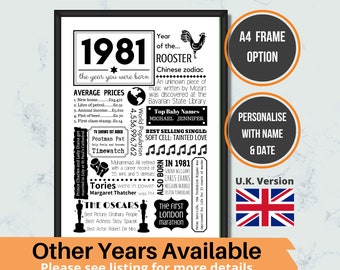 1981 Birthday Uk Facts 40th Birthday Poster 40th Birthday Etsy In 2021 40th Birthday Images 40th Birthday 40th Birthday Poster
